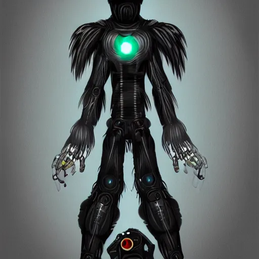 a cybernetic humanoid crow, furry art, digital