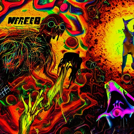 Prompt: rap album cover, 8 k, 4 k uhd, trippy, artistic, aggressive, super detailed, very detailed, detailed