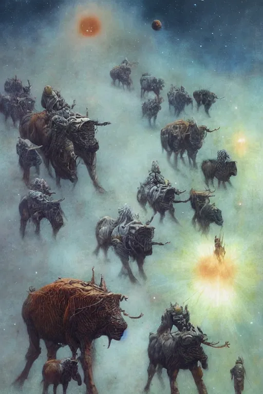 space cattle herd by Esao Andrews and Karol Bak and Zdzislaw Beksinski