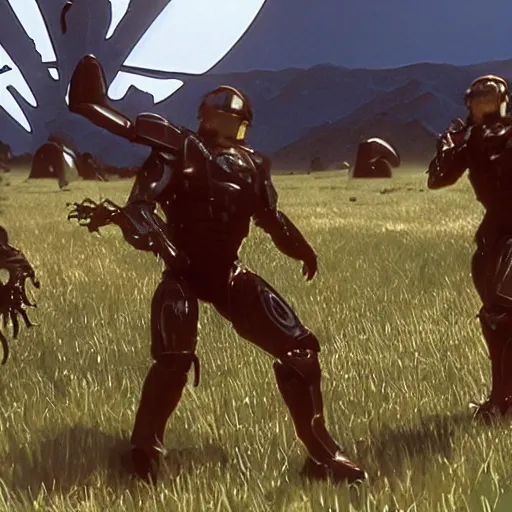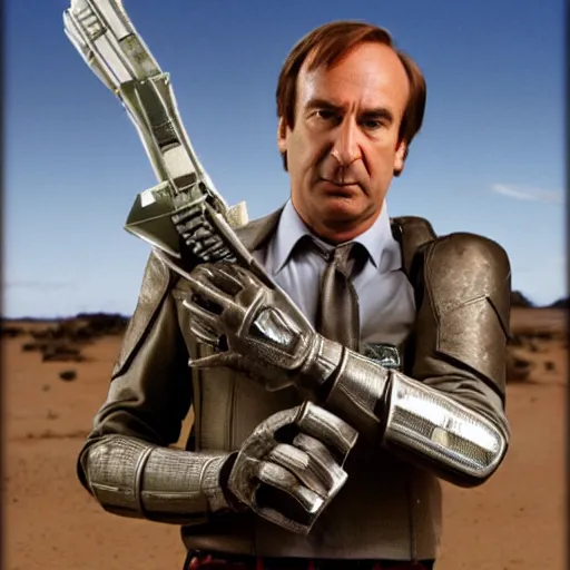 Saul Goodman in Starship Troopers armor fighting bugs on Klendathu