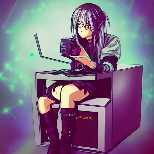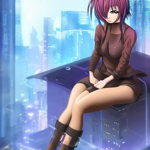 advanced anime digital art, cyberpunk nekogirl sitting in a box