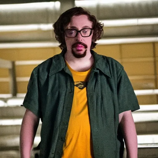 Prompt: A still of Sam Hyde in the Black Panther, close-up, sigma male, rule of thirds, award winning photo, unreal engine, studio lighting, highly detailed features, raining, ethereal lighting