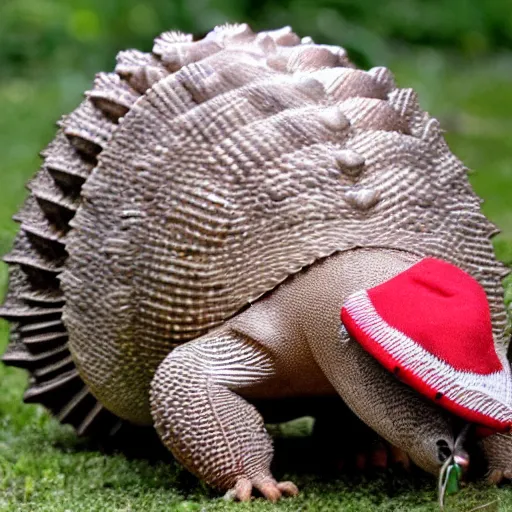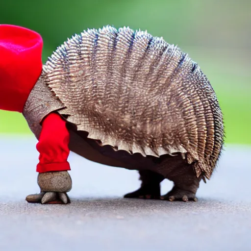 and armadillo wearing a red hat