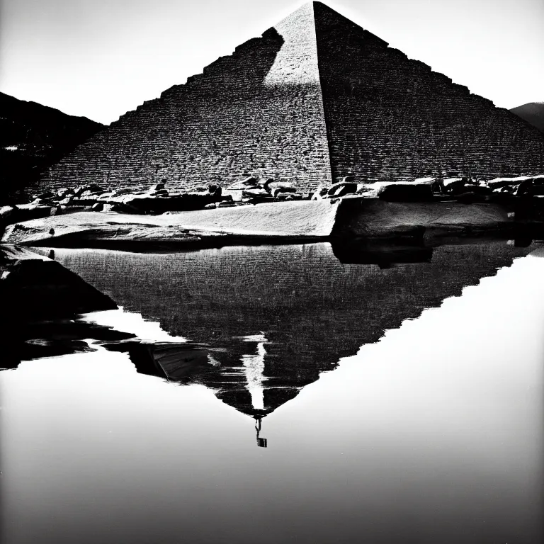 Upside Down pyramid Reflecting off of water in the style Ansel Adams