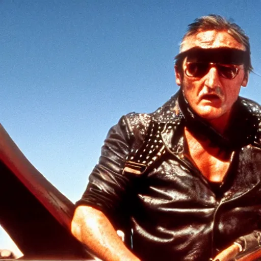 Film still of Dennis Hopper in Mad Max 2: The Road Warrior
