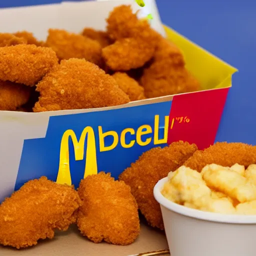farm chicken eating McDonalds chicken nuggets