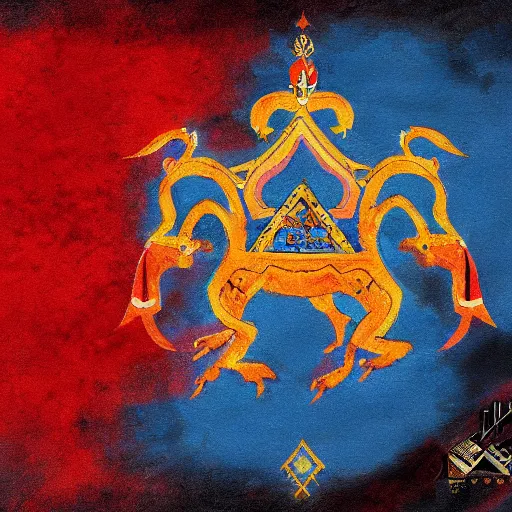 Kazakh Khanate, medieval fantasy, landscape painting, digital painting, beautiful, Turkic flag, warriors