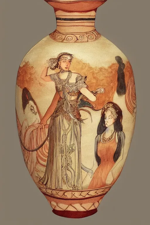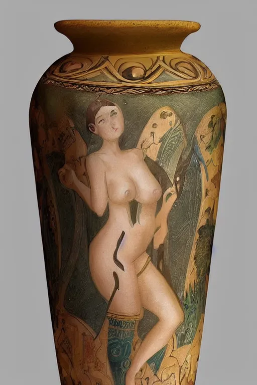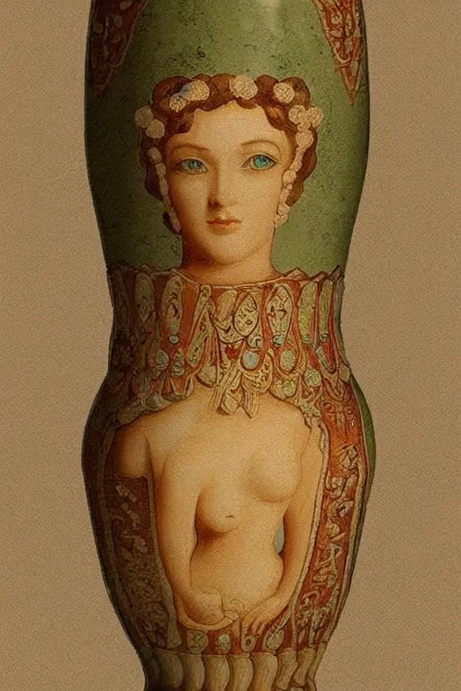 a fantasy 2d detailed art of a woman who looks like an antique vase from Roman period