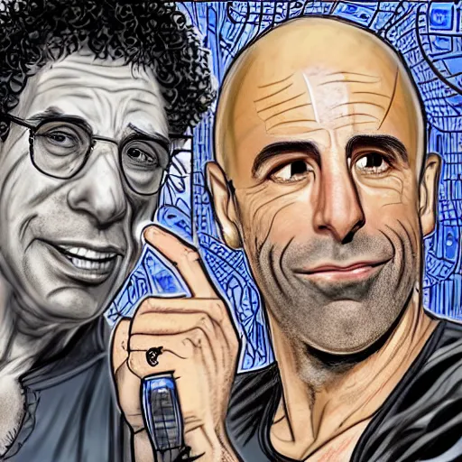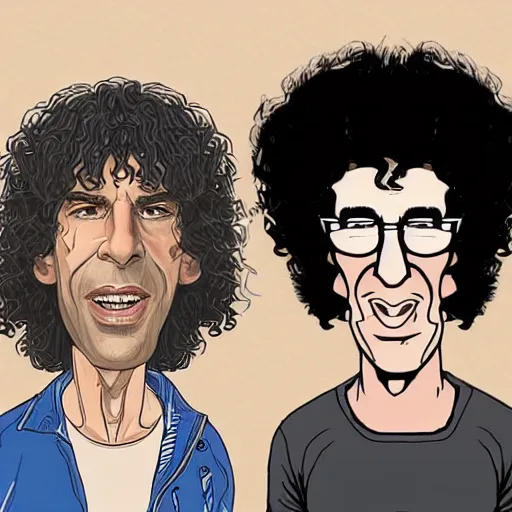 Joe Rogan and Howard Stern as a cartoon, intricate, highly detailed, concept art, smooth, sharp focus, illustration, medium shot, mid-shot