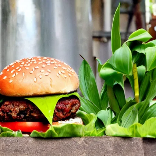 the plant is eating a hamburger