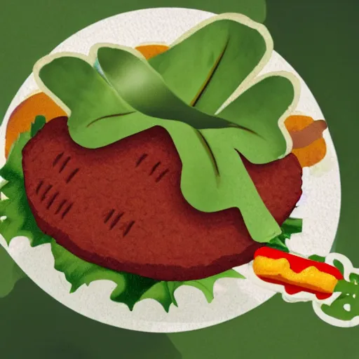 Prompt: illustration of a golem disguised as a hamburger