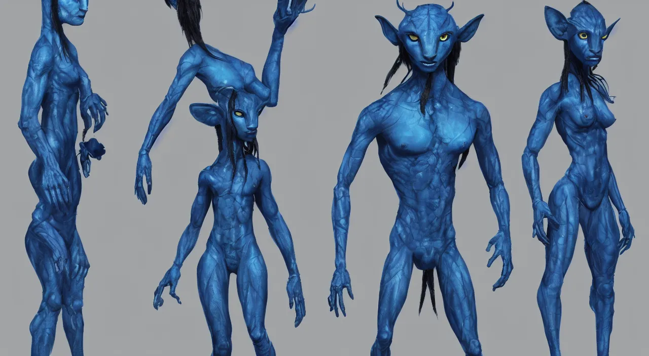 Avatar themed concept art, blue humanoid creatures, trending on artstation,
