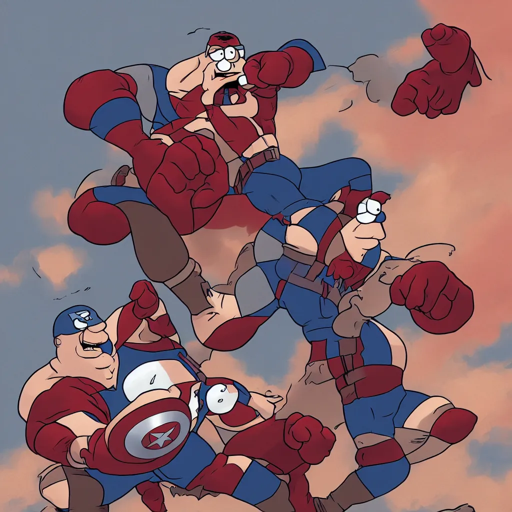 Peter Griffin from family guy killing captain America, digital art, artstation