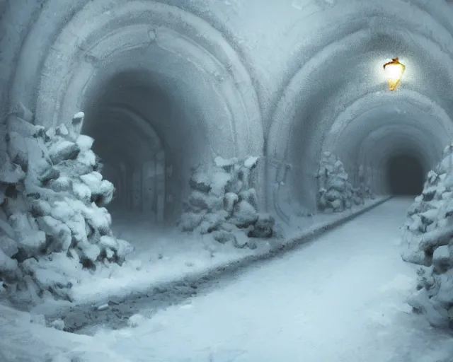 A Portal in a snowing tunnel, napoleonic era, digital art, highly detailed, trending on artstation, tense mood
