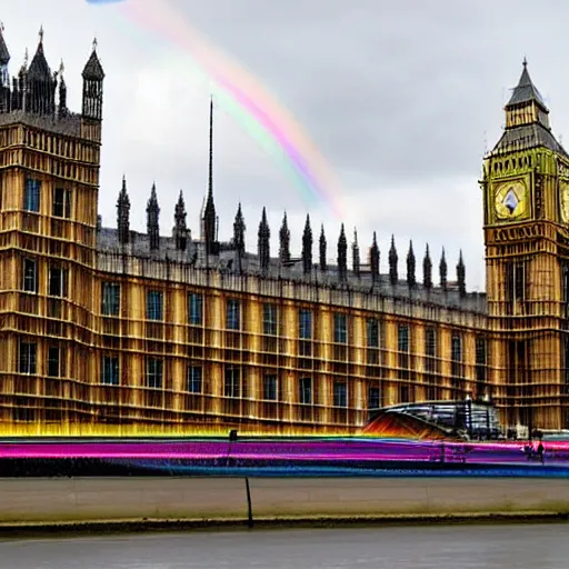 Westminster palace painted the colours of the rainbow