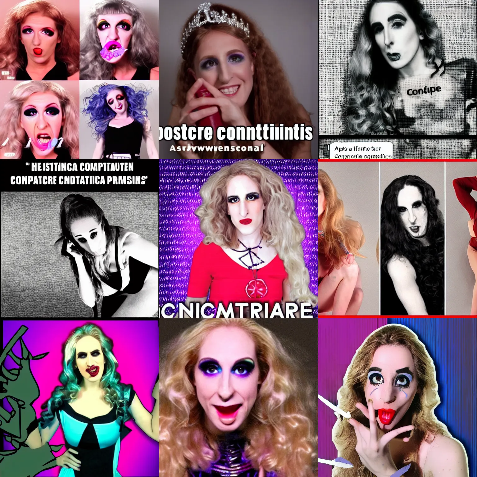 Prompt: 90s VHS footage of a drag queen looking fierce and serving cunt being interviewed on the news