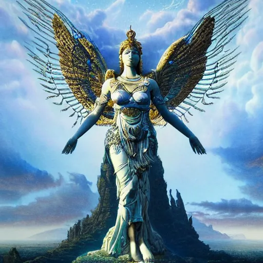 A digital intricate masterpiece illustration concept art of a giant statue of Goddess Hera with i...Show more