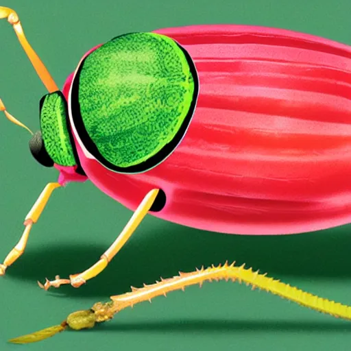 Prompt: hybrid of green beetle and red turtle, photorealistic, close - up