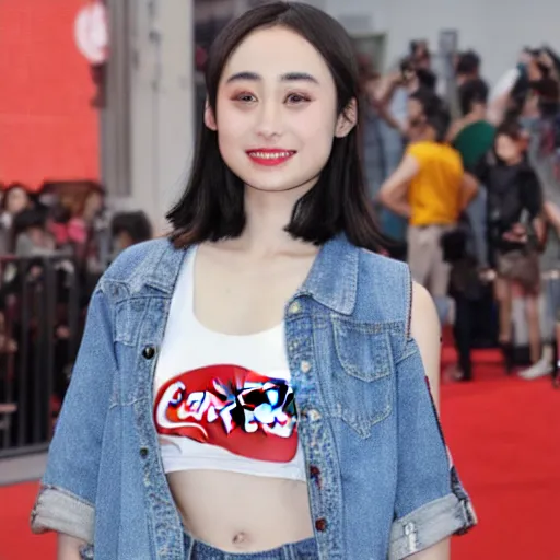 suzu Hirose wearing Coca Cola crop top
