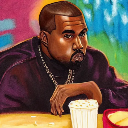 Kanye West sitting alone at Mcdonalds, painting