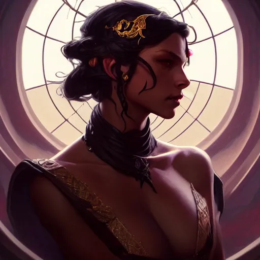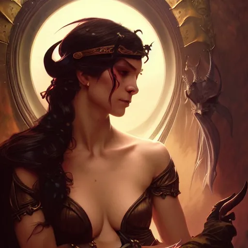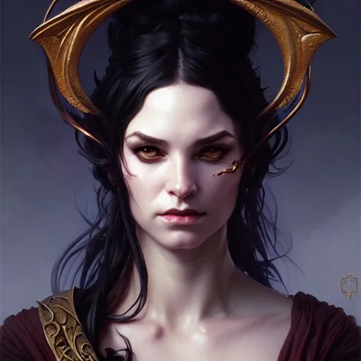 , portrait of an dark hot tiefling, D&D, fantasy, intricate, elegant, highly detailed, digital pa...Show more