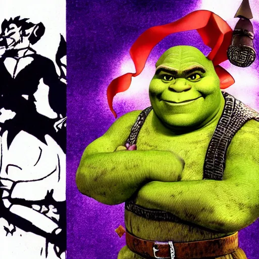Shrek drawn by Kazuma Kaneko for the game Shin Megami Tensei IV, white background