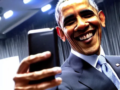 Obama taking his first selfie
