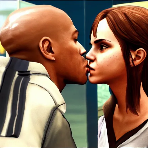 emma watson kissing with carl johnson from gta san andreas in cinematic 4k