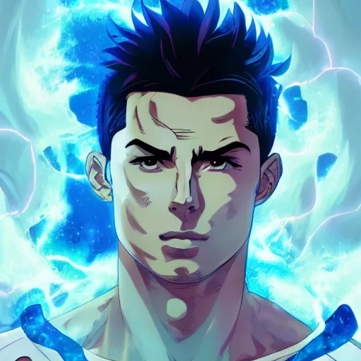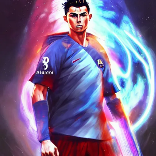 anime portrait of Cristiano Ronaldo as a shaman yedi using dark force to eliminate Messi as an an...Show more