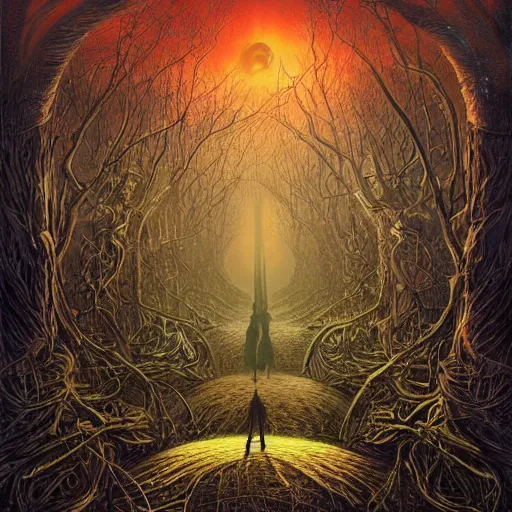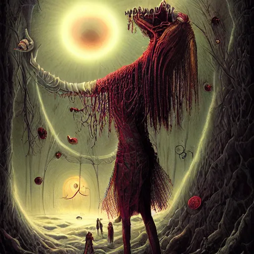 Vampire traveling through a beautiful psychedelic world, horror, illustrated by Andrew Ferez, trending on artstation