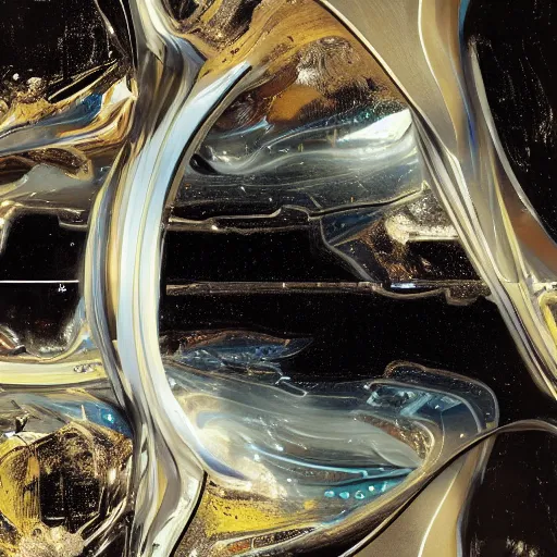 digital sci-fi oily gloss reflection zaha hadid airport motherboard with organic forms in liquid...Show more