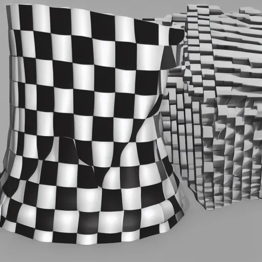 early 3d computer graphics experiment of a roman column on a shiny checkerboard, 1980
