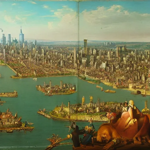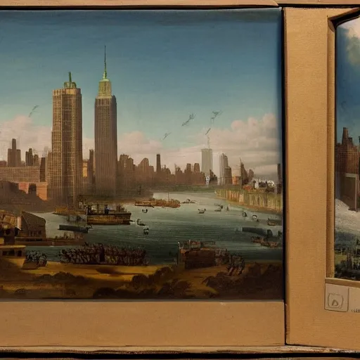 New York City in 1750,viewed by a soldier, in the style of the Hudson River School