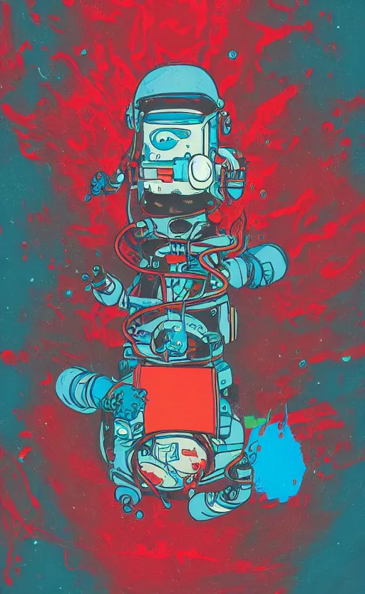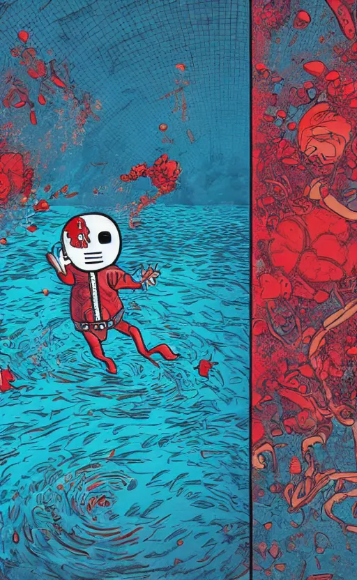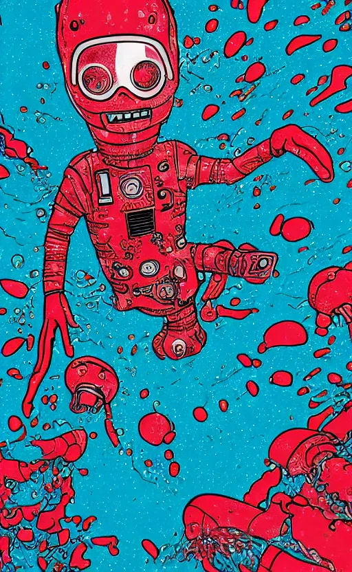 drowning astronaut under water, red or blue plants, panic, hyperdetailed, hyperrealistic, cyberpunk style