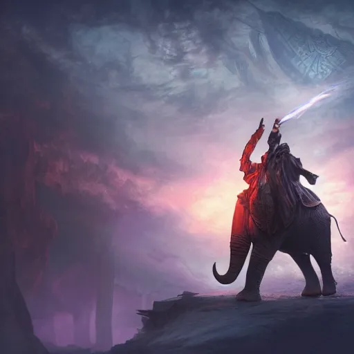 Anthropomorphized Elephant casting epic world spell, magic the gathering artwork, cloak, hat, D&D...Show more