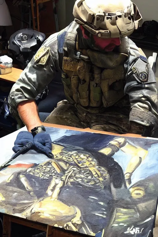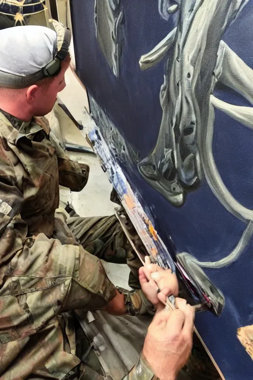 Navy SEAL working on a painting to help with ptsd