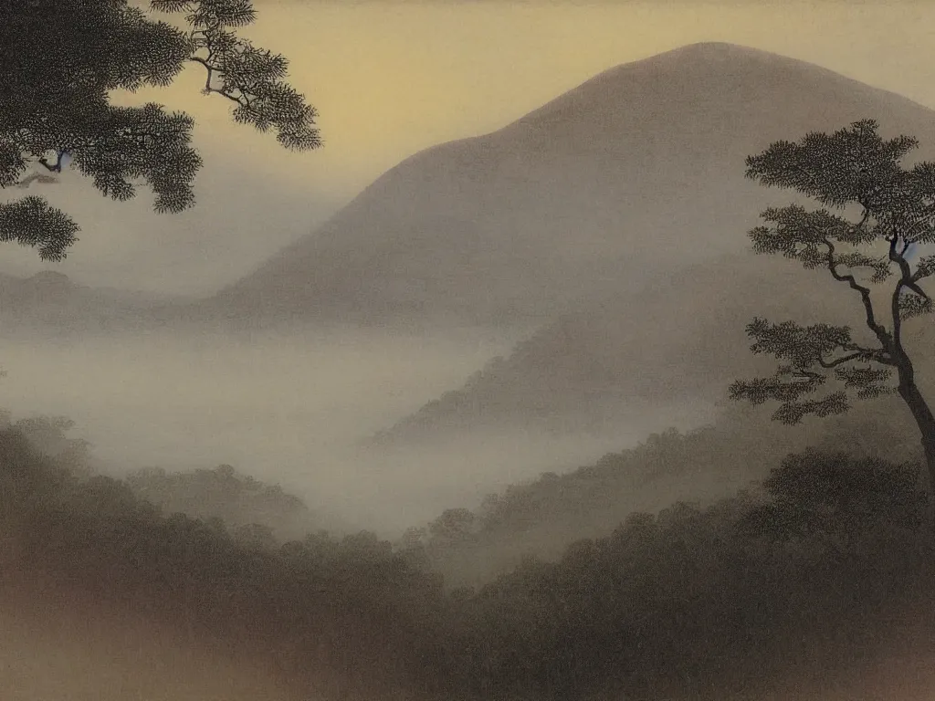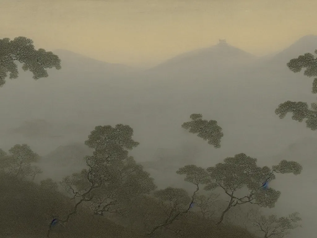 View of the old Kyoto in the fog. Painting by Caspar David Friedrich