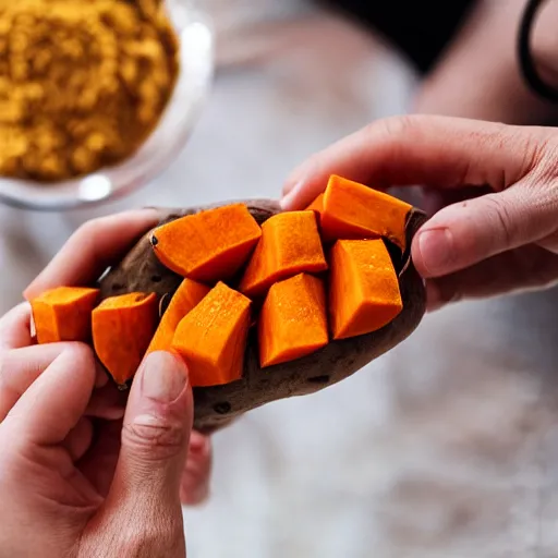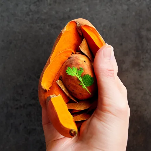 photo hand holding sweet potato