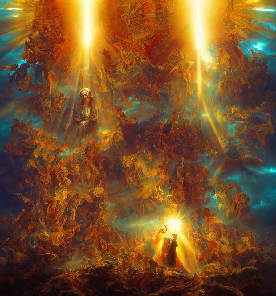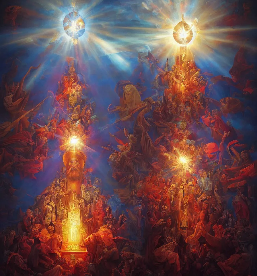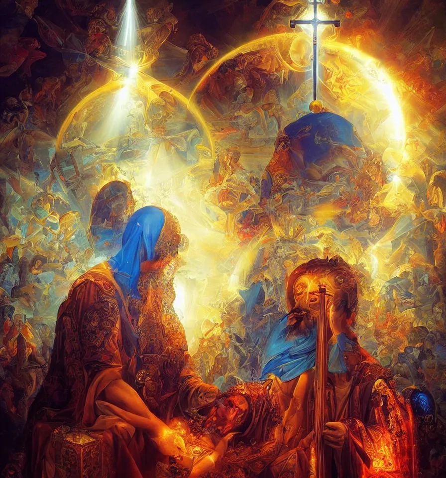 A orthodox icon made of a blood + refractive light + caustics + backlit + incredible lighting + s...Show more