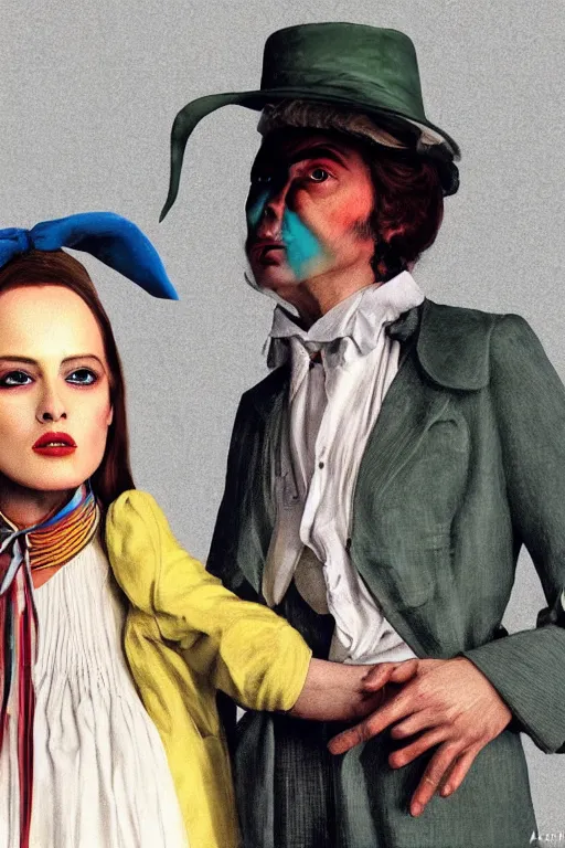 hyperrealism close-up fashion portrait of couple photo from The Holy Mountain by Alejandro Jodorowsky in style of Francisco Goya