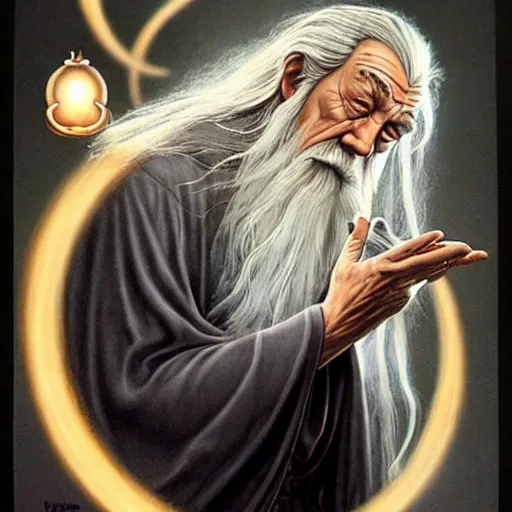 Gandalf pondering his orb by Todd Lockwood
