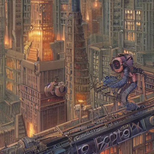 A steampunk city, art by James Jean and Wayne Barlowe, art deco