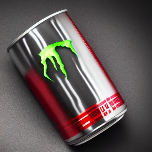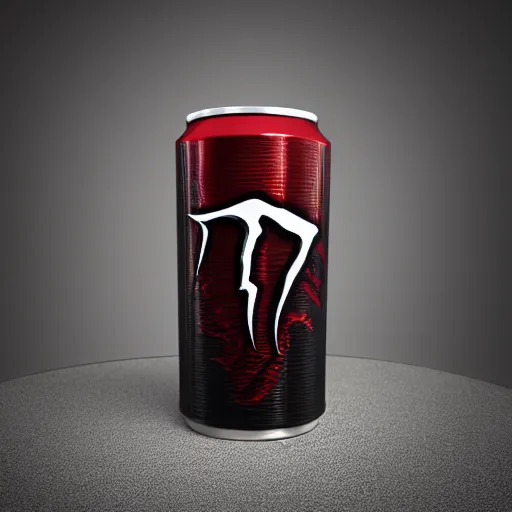 new design aluminum can monster energy, red tones, 4k, octane render, ultra quality