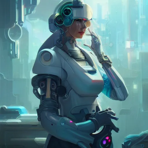 a portrait of a beautiful cybernetic nurse, cyberpunk concept art by pete mohrbacher and wlop and...Show more