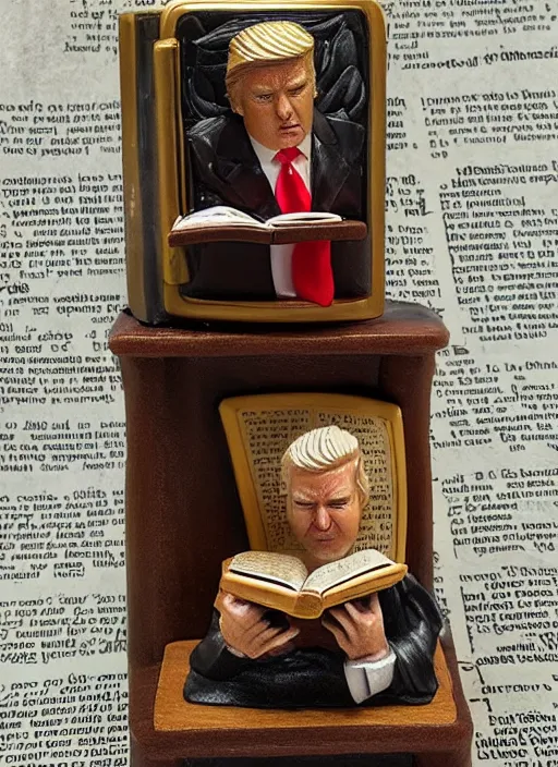 80mm resin detailed miniature of Donald Trump reading the bible, Product Introduction Photos, 4K, Full body