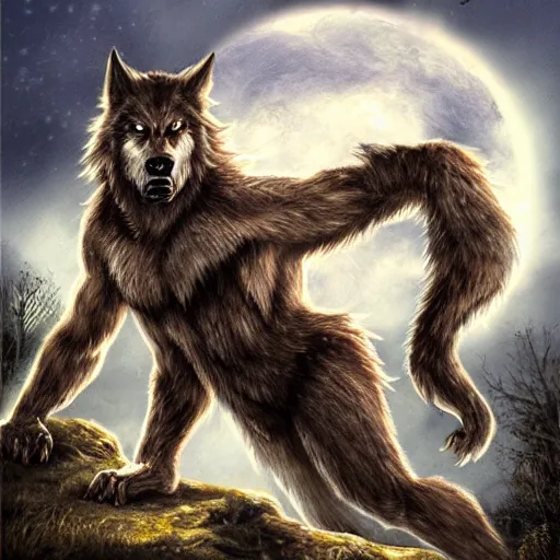 Prompt: werewolf, dramatic pose, full moon background, dramatic lighting, photorealistic uhd 8 k, award - winning videogame promotional art
