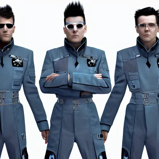 Group art of Starset in sci fi uniforms; hyper realistic, high detail, unreal engine, artstation, deviantart