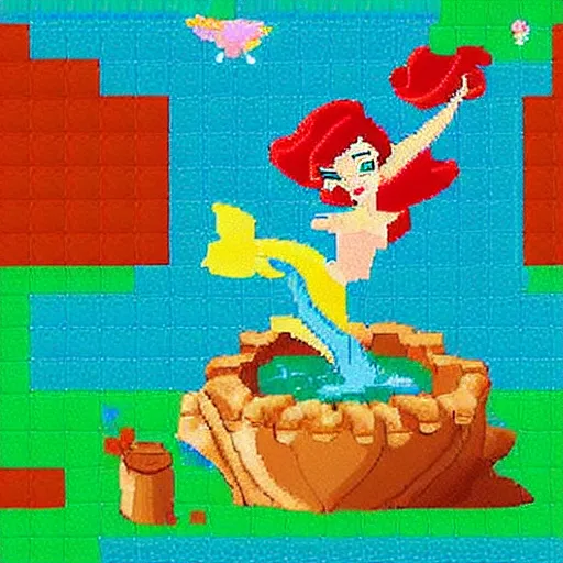 Disney's Ariel as an playstation 1 pixel art Game