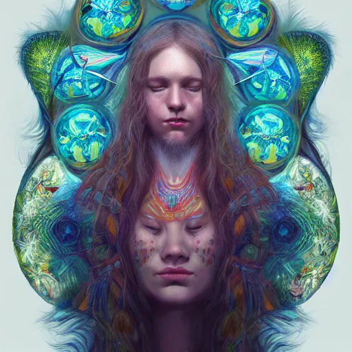 Druid portrait by mandy jurgens and warhol, ernst haeckel, james jean, artstation, bright colours