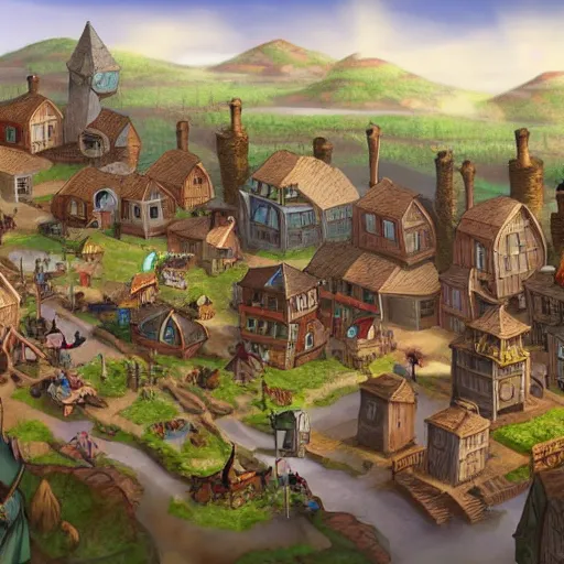 large fantasy town filled with people who is doing their own stuff, game concept art, illustration,